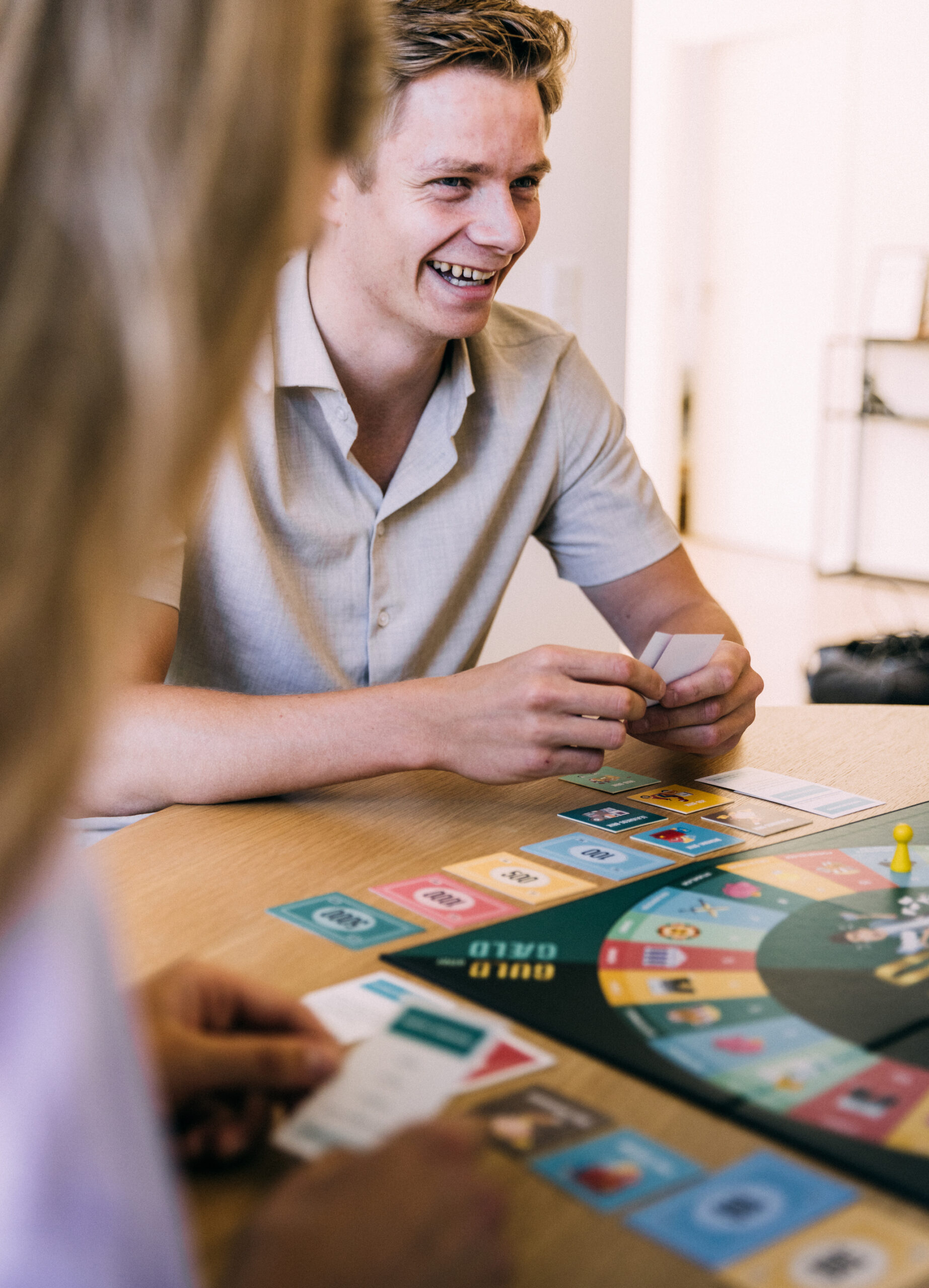 Alle spillere starter med at bo hjemme og skal undervejs i spillet vise deres taktiske- og økonomiske færdigheder ved at samle 4 forskellige brikker for dermed at kunne flytte hjemmefra og vinde spillet.